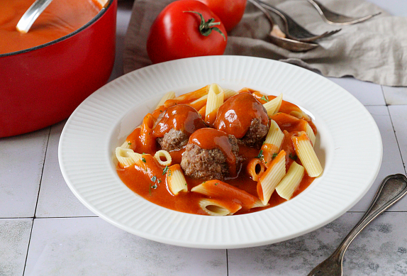 Kuličky z mletého masa s rychlou rajskou omáčkou
