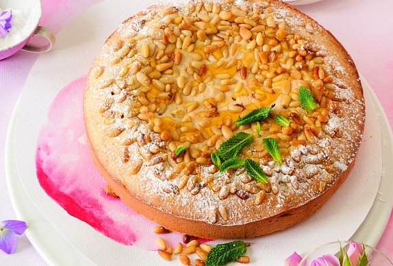Rychlý, voňavý a přitom neobyčejný. Pokud chcete chuť tohoto koláče ještě více zvýraznit, můžete piniové oříšky před sypáním na těsto krátce opražit na suché pánvi.