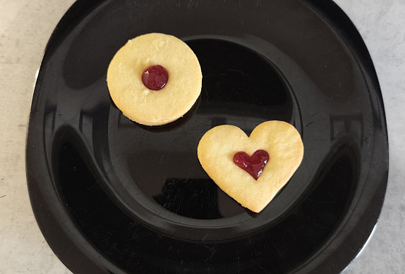 U receptu mi chybí délka odpočinku těsta, nechala jsem ho v lednici přes noc a asi to bylo moc. Těsto se mi hrozně lepilo, ani válení mezi dvěma pečicími papíry nepomohlo, a to jsem se snažila hníst opravdu minimální dobu. Dost jsem bojovala, ale nebylo ho moc, takže jsem nakonec úspěšně dobojovala. Těsto jsem prostě podmoučila a naštěstí to nemělo na křehkost vliv ? Pekla jsem 8 minut. Linecké je dobré.