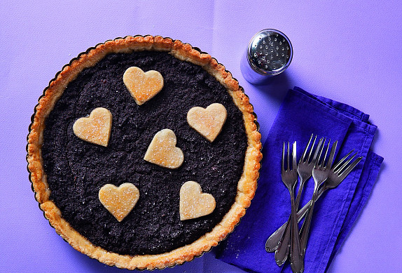 Dvě třetiny těsta rozválejte na pomoučeném válu na plát a přeneste ho na plech vyložený papírem na pečení (těsto také můžete vyválet na dva kulaté pláty a vyložit jimi dvě kulaté formy). Na těsto naneste připravenou makovou náplň. Zbylé těsto rozválejte a vykrojte z něj libovolné tvary, kterými pak ozdobte povrch koláče, nebo ho nakrájejte na pruhy a vytvořte z nich na koláči mřížku.