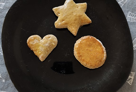 Těsto vyválíme, necháme odpočinout asi 2 hodiny (může se dělat i hned), vyválíme po částech asi 0,3-0,5 mm placky, vykrajujeme různé vánoční tvary, klademe na pečící papír, potřeme rozšlehaným celým vejcem a pečeme asi na 180 °C do růžova.